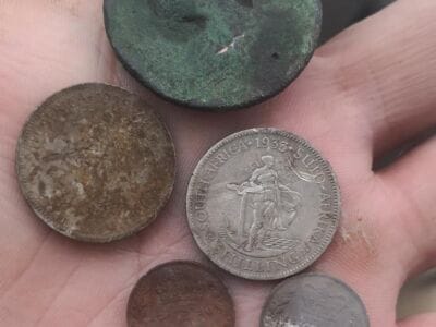Myself and Bernard Jacobs went for an inland hunt and even though it is trash central we still managed some great finds. The Nokta Anfibio had a blast filtering out the good stuff.. Plenty pennies and half pennies. Oldest coin for me was a 186? British penny(Victoria young head). 2 xshilling and 2 x British tickeys.. (1886, 1890). Happy days…