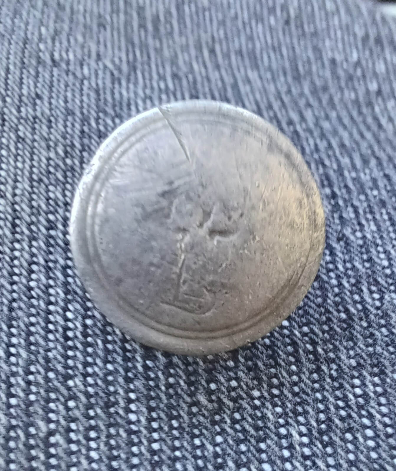 He found this silver button tog with his brand new Simplex+ on plowed field in Essex UK his first time out with it. Kim set it up for him he walked out and it was his first signal.