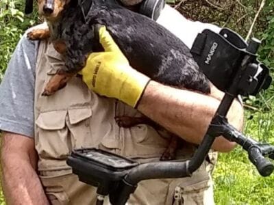 Had some good detecting the past few days with my Makro Multi Kruzer. Depth is not everything. It is the ability to see in between the iron and trash and cherry pick the good stuff. That is why I am doing so good at my old spots and of all places in my yard. Pulled two mercury dimes and a rosey from the knoll in my yard. Unbelievable as I have hit it so many times over the past 9 years.I just could not zip in between the iron with my Sovereign GT. At the farm field I got some musket balls, old buttons, an unreadable colonial copper, an indian head cent, and an 1882 Canadian large cent. A first for me. Take care and happy hunting. Last but not least my dachshund Stardust assisted, Nokta Makro Detectors