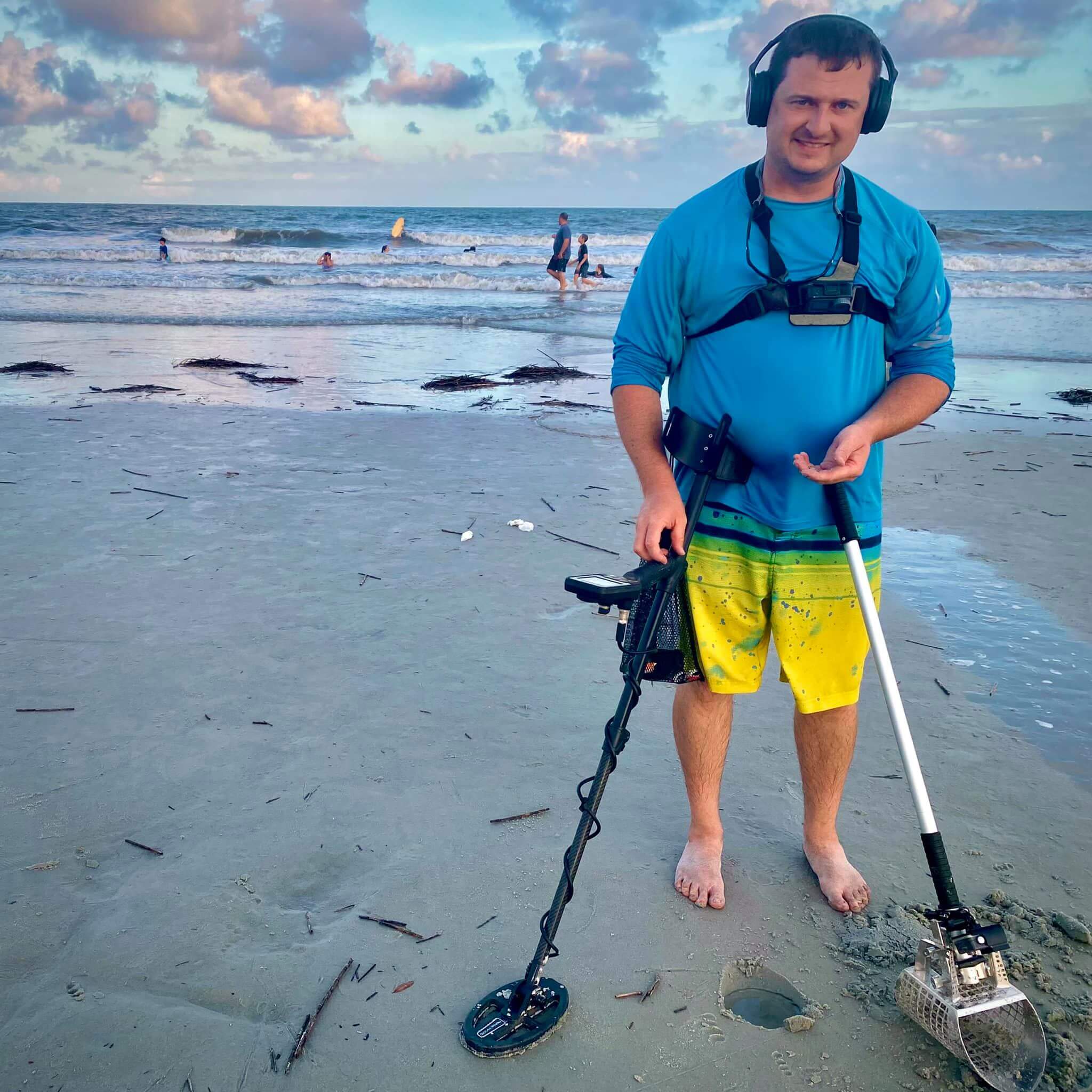 I had a very successful time with my Simplex on Hilton Head Island beach! Check out this Silver earring with the awesome pearls on it! I figured out how to make the Simplex run quiet and completely stable in the wet sand and in the surf. It was nice and quiet.