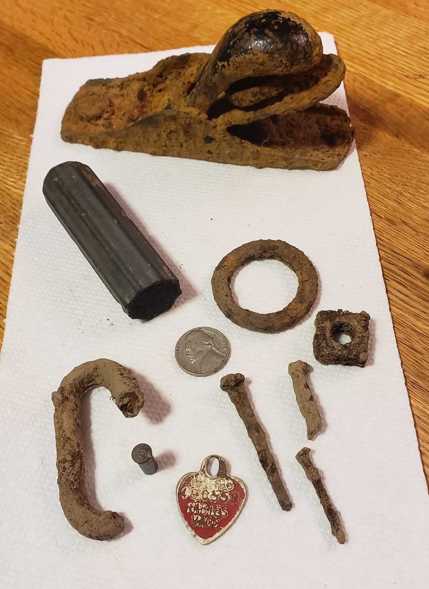 Poking around the old foundation again. Dog tag and screwdriver handle? Were a few hundred feet away in the nearby woods.
