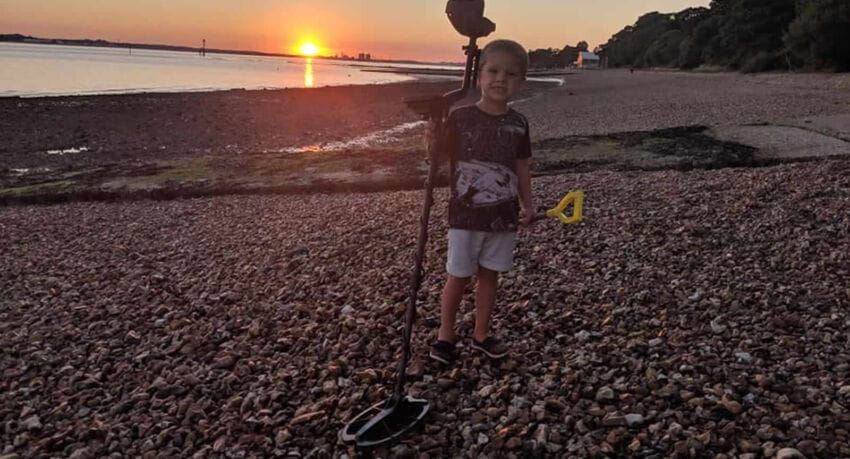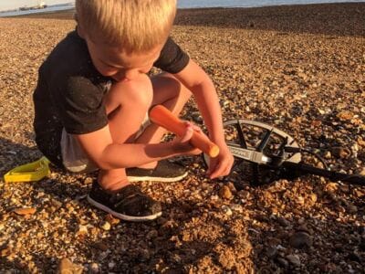 Quick beach hunt with the boy Date: 2018-08-03 Categories: All Success Stories Beach and Underwater Coin Tags: Kruzer, Metal Detector Quick beach hunt with the boy. Didn’t get much but at that age they want to keep bottle tops. Published by Steve Boston