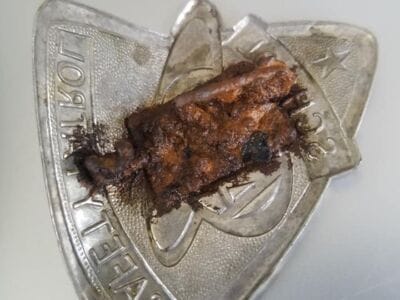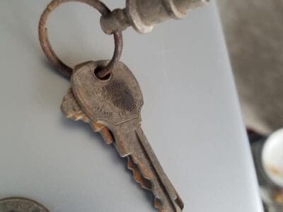 So I wanted to go back to Gilbert area again and it was fun checking out another spot on the school yard. That badge is my first one that I have found yet. Another wolf boy scout slide wasn’t far from the badge. But the last pictures are of a set of keys and the clad that I found there.