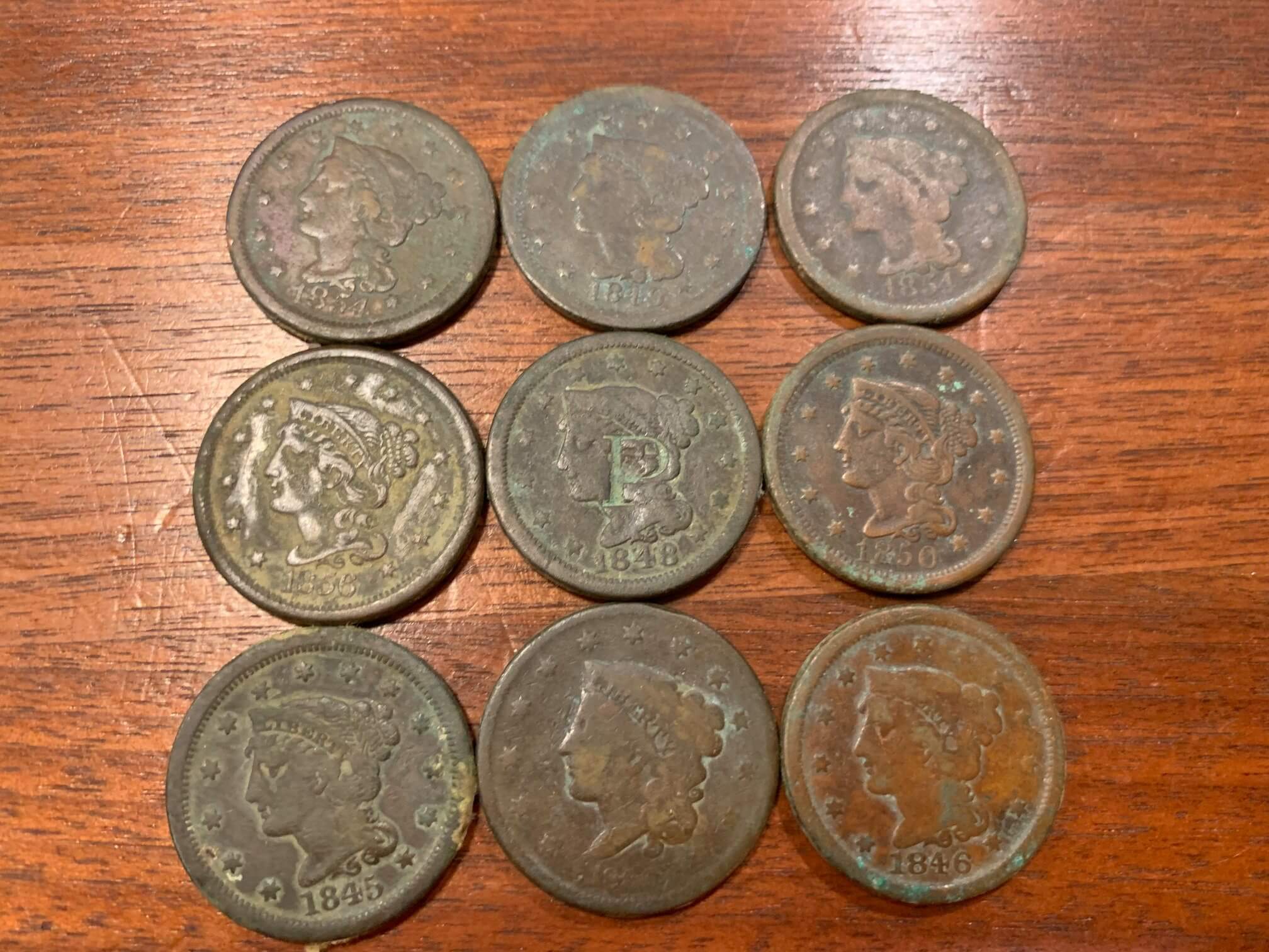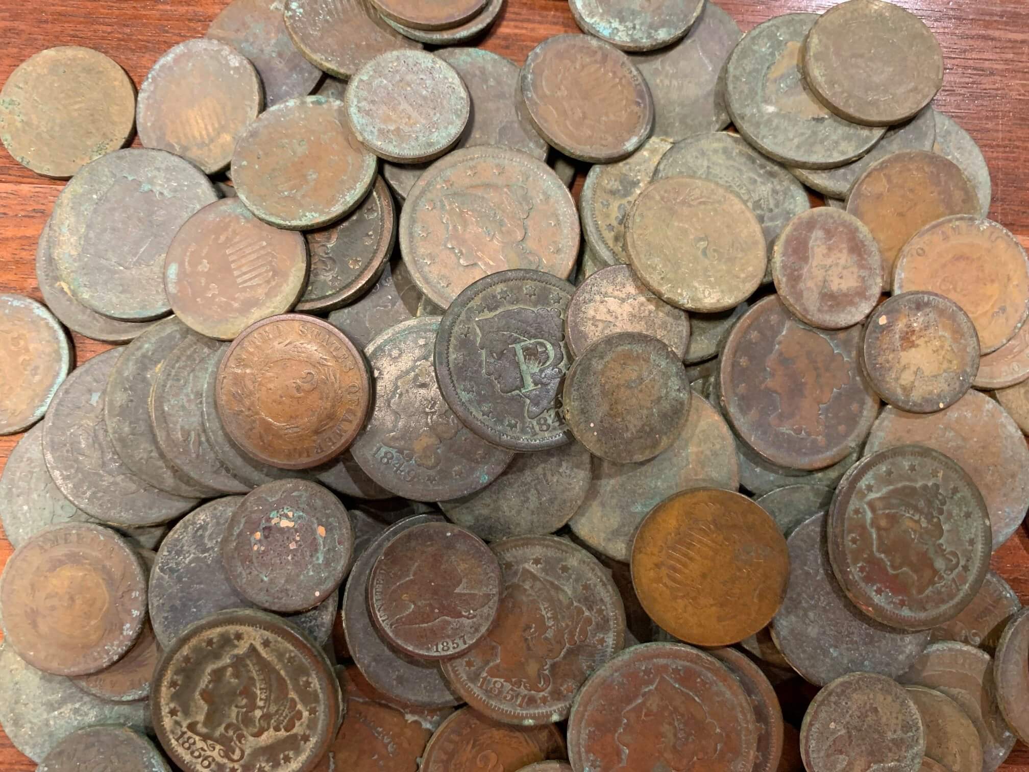 Hey folks. Some of you may have seen where I posted a couple weeks ago about a big wheat penny hoard I had discovered. Ended up with about 1,070 or so pennies from that single hole. Well, I went back last weekend and after finding a few wheat pennies I had missed on the surface I decided to open up some test holes around that very spot. What happened next was nothing short of incredible. I turned over my first scoop of dirt and multiple Large Cents and 2 Cent coins just started falling off the shovel. I knew I had hit something a lot better than a pile of wheats so I went back to the truck and got my camera to record the whole experience. I dug for the next hour or so during time which I managed to recover 54 Large Cents, 39 2 Cents, 10 Flying Eagles, one King George II copper, and about a dozen or so wheat pennies. That’s ~200 years of coin dates inside the same hoard. My theory is that the same family had an area under the floorboards where they hid valuables for generation after generation, stuff got lost or covered up with dirt, people died, etc. Several of the coins still have paper roll wrapping around their edges and many were still stuck together. This hoard hasn’t yielded any silver or gold yet but I’m holding out hope that it’s down there somewhere. I will of course be going back and to excavate and sift the entire area. Hope it’s ok with the Admins that I linked to the video of the hunt. Thanks.