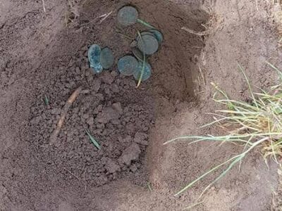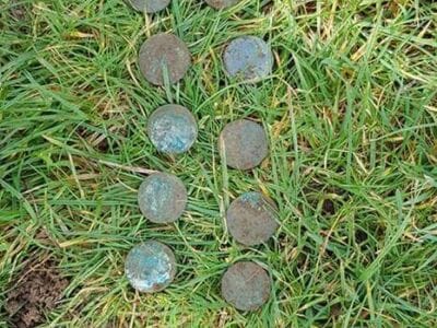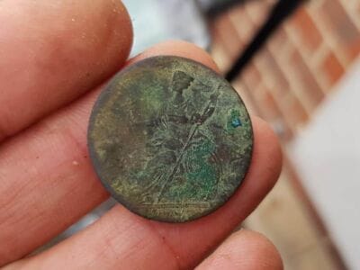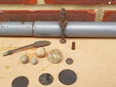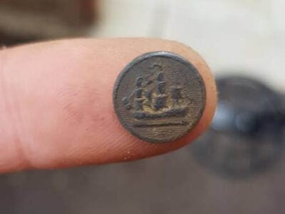 Todays finds on the anfibio multi. 11 Britannia coins from 1770s in 1 hole , a nice ally sloper pipe tamper, 2 nice buttons ( the ship one is very very tiny) , 3 musket balls and some grots etc.
