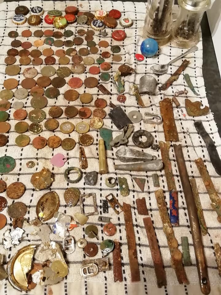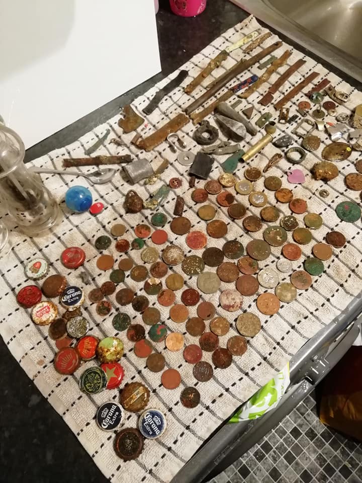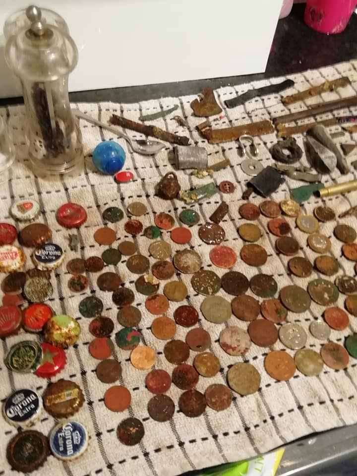 After gridding the low water mark and just picking up Ali I headed to low spot I could see that I hadn’t seen before and it’s was riddled with Target after target, with no small coil and only the tornado I had my work cut out but its sessions like these that bond you to your kit but if I take anything away from today it will be never forget your boots as I dug about 160 targets in crocs, now Where’s that nurofen.