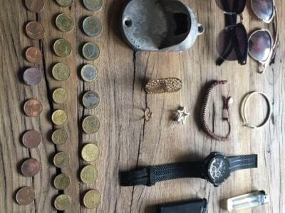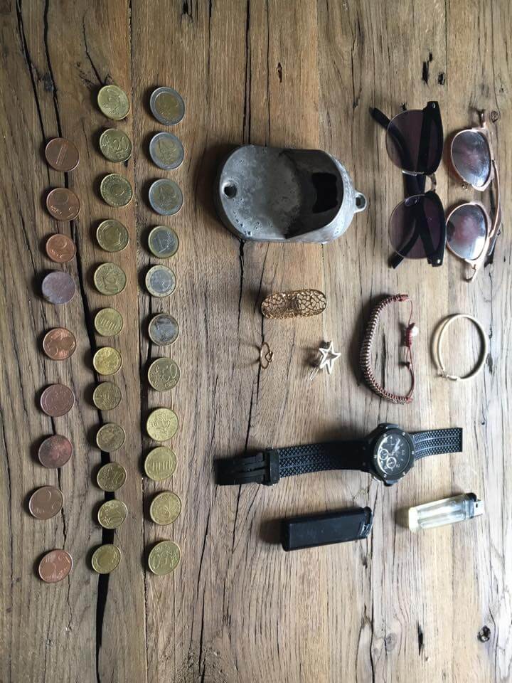 Yesterday evening at the beach with the impact….13,62€…a hublot watch (i think a good replica….have to check it) two rings (fake) a Earring, bracelet, sunglasses, lighters….and a Heineken Bottle opener.
